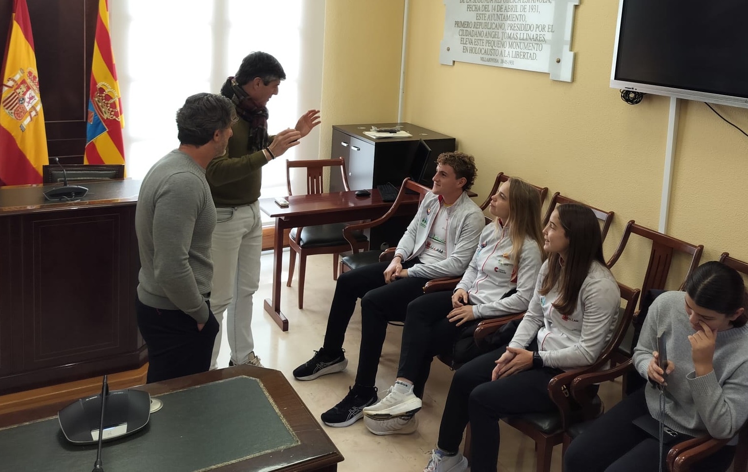 El Alcalde Marcos Zaragoza y el concejal de Deportes, Peyo Lloret, han recibido esta mañana en el Ayuntamiento de Villajoyosa a tres de los palistas vileros Andrea Jiménez, Pau Sánchez y Sara Mengual, Los deportistas vileros cosecharon grandes éxitos en el Campeonato del Mundo de Kayak de Mar 2025, que se celebró en Durban (Sudáfrica).