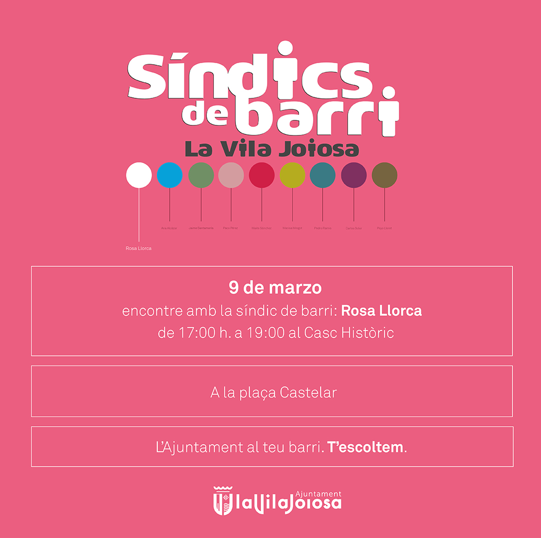El segundo tendrá lugar el lunes 9 de marzo, de 17:00 a 19:00 horas, en el casco histórico. La síndic de este barrio, Rosa Llorca, se reunirá con los vecinos en la plaza Castelar.