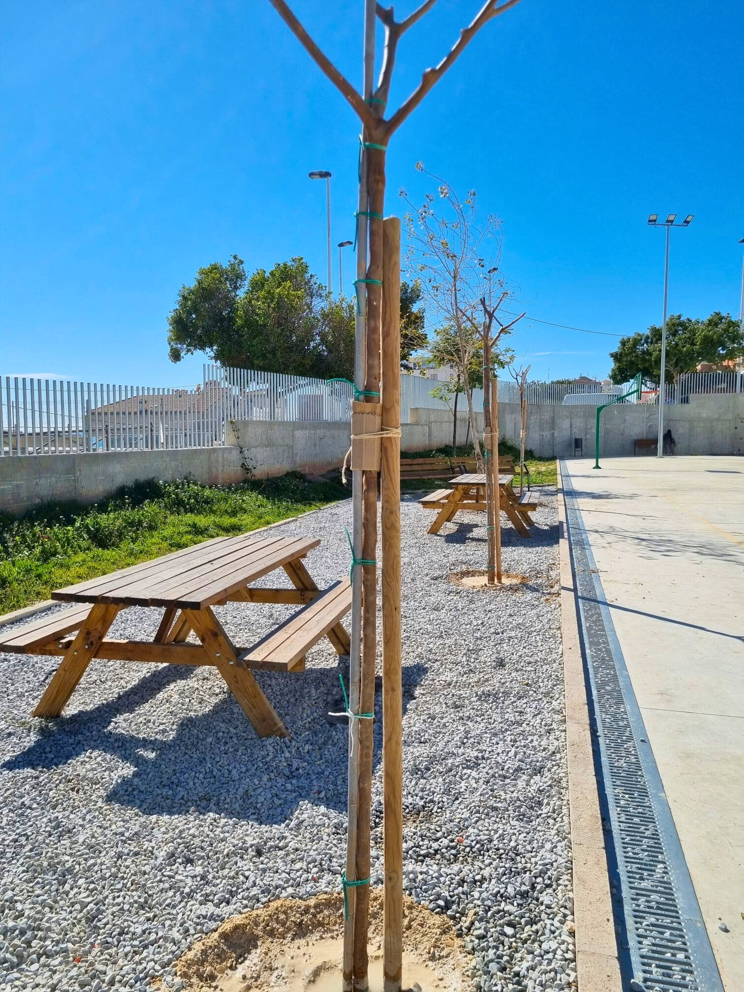 Los trabajos se han completado con la plantación de cuatro moreras en el patio del CEIP Doctor Álvaro Esquerdo para dotar de sombra a la zona de mesas de picnic de este centro escolar.