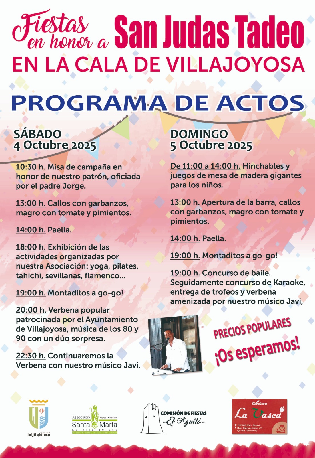 El barrio de la Cala de Villajoyosa celebra este fin de semana sus fiestas en honor a San Judas Tadeo. Los actos se celebrarán el sábado y el domingo y están dirigidos a todas las edades.