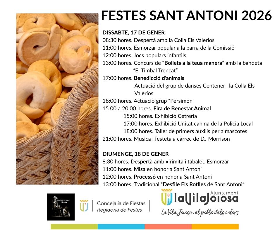 El concejal de Fiestas, Jaime Santamaría, indicó que “las fiestas en honor a Sant Antoni del barrio de la Ermita son las más populares y mantienen una de las tradiciones más antiguas de Villajoyosa”. El edil del área animó a todos los vecinos y visitantes a acudir a esta celebración “donde se podrá disfrutar de todo tipo de actividades para todos los públicos además de uno de los actos más emocionantes y multitudinarios como es el desfile de «Els Rotllets de Sant Antoni. Todo sin dejar de lado la tradicional bendición de animales y otras actividades relacionadas con ellos”.