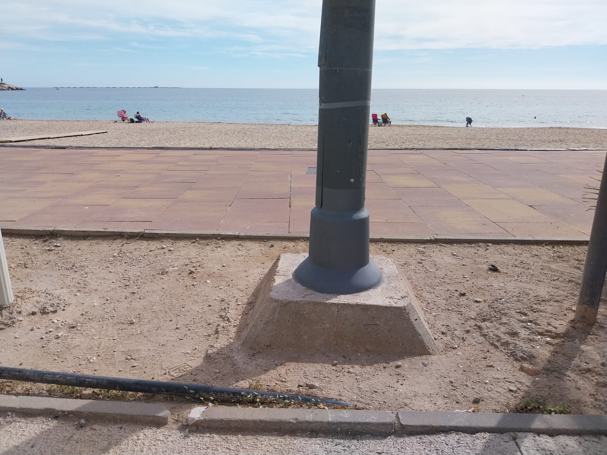 La Concejalía de Escena Urbana del Ayuntamiento de Villajoyosa ha llevado a cabo un tratamiento especial de limpieza y saneamiento de las bases de las columnas del alumbrado público de la playa Centro para su mejora y evitar su deterioro.