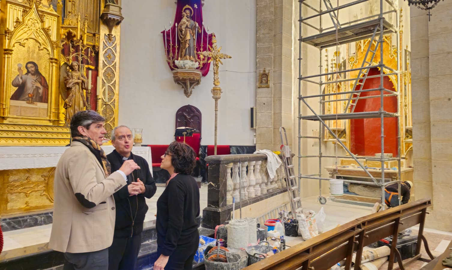 Durante la visita para conocer el estado de los trabajos, el párroco indicó que la previsión es que los trabajos estén terminados para Semana Santa, en concreto, para el Jueves Santo.