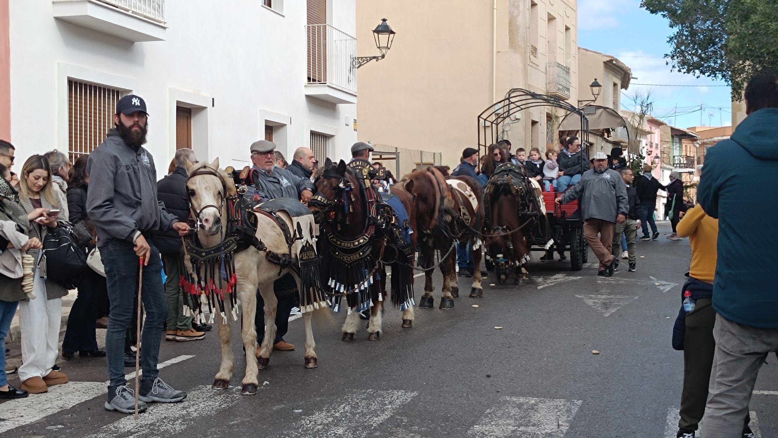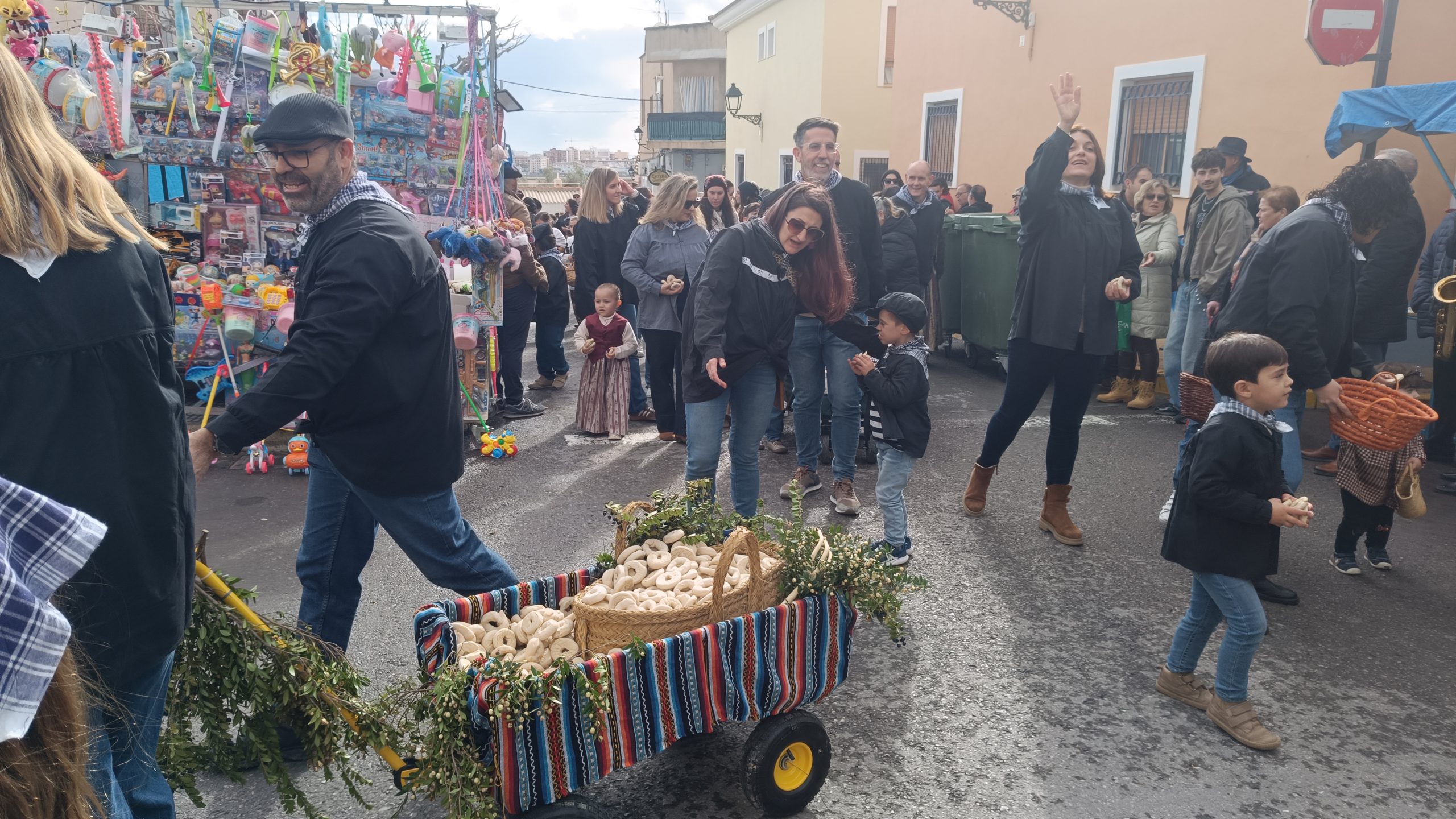 Aquests reconeguts rotllos s’han repartit per part dels veïns de l’Ermita entre el públic que es concentrava als carrers d’aquest barri de la Vila Joiosa. A peu o sobre carros, abillats amb el “brusó llaurador”, han lliurat milers de “rotllets” pels carrers a ritme de “xirimita i tabalet”.