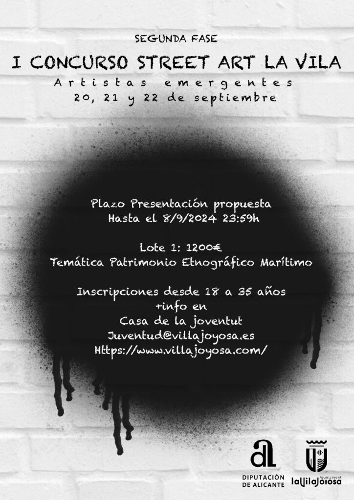 Les regidories de Cultura i de Joventut de l’Ajuntament de la Vila Joiosa convoquen la segona fase de la primera edició del Concurs Street Art La Vila Joiosa Artistes Emergents. En este cas, es convoca el lot d’intervenció artística que va quedar desert en la primera cita, localitzat en la rampa d’accés des del riu […]