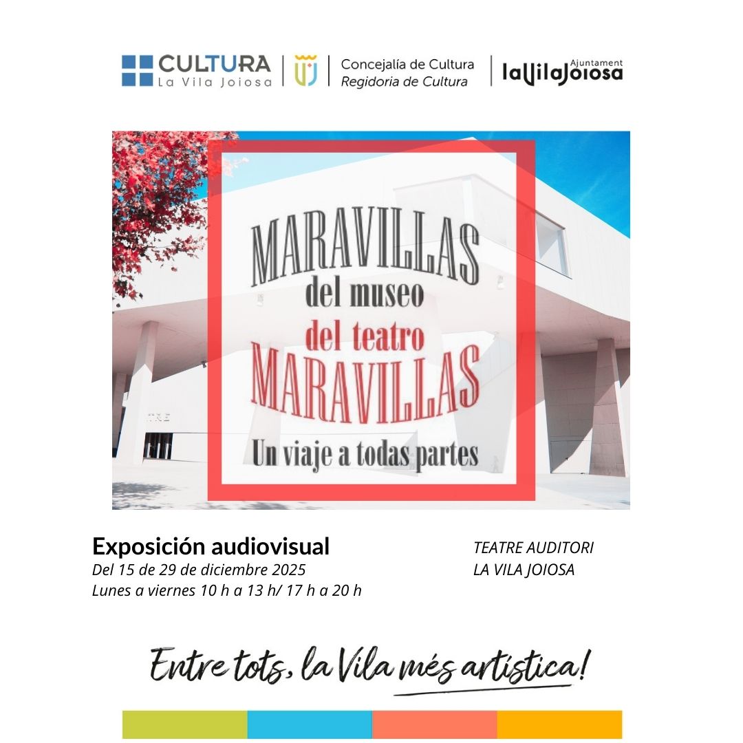 El Teatre Auditori la Vila Joiosa acull l’exposició audiovisual “Meravelles del museu, del teatre Meravelles: Un viatge a tot arreu. Aquesta mostra cerca introduir als espectadors del segle XXI en el “gran món del teatre” a través de les “meravelles” que atresora el Museu d’Arts Escèniques d’Almagro.