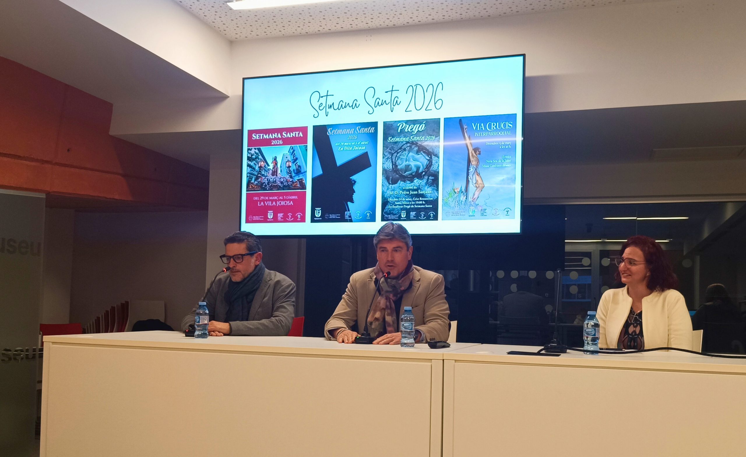 La Junta Major de Confraries de la Setmana Santa de la Vila Joiosa va presentar aquest divendres al pregoner i el cartell anunciador de la Setmana Santa 2026. Pedro Juan Sanjuan Blanco serà l’encarregat d’anunciar la celebració de la Setmana Santa vilera el dissabte 14 de març, després de la missa que s’oficiarà en el temple Crist Resucitado a les 19:00 hores.