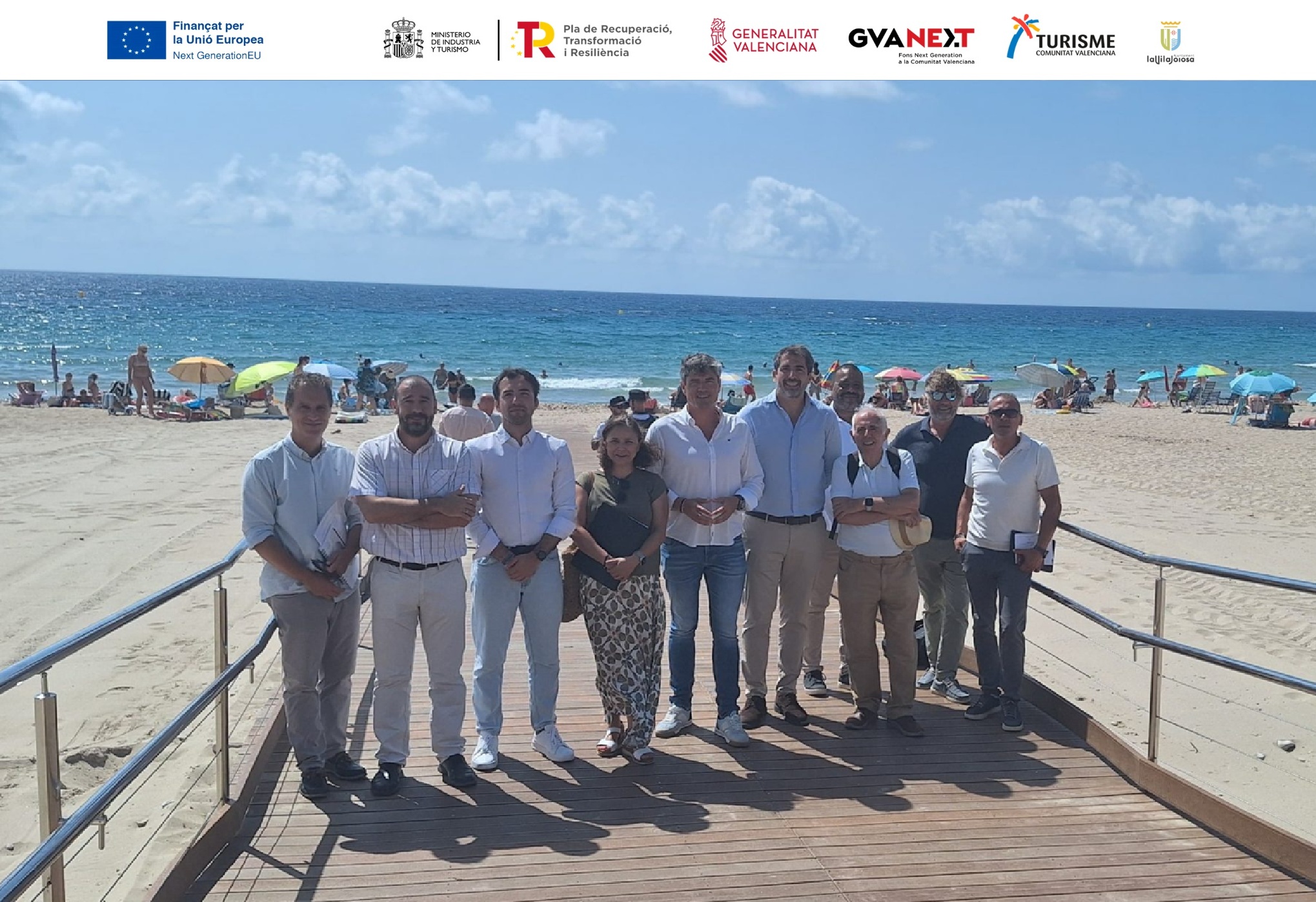 La platja Centre de la Vila Joiosa compta amb una nova passarel·la 100% accessible i realitzada amb material sostenible que millora l’accés a l’arena des del passeig marítim. L’actuació s’inclou en el Pla de Sostenibilitat Turística en Destí (PSTD), en concret la número 8, finançat amb Fons Next Generation.