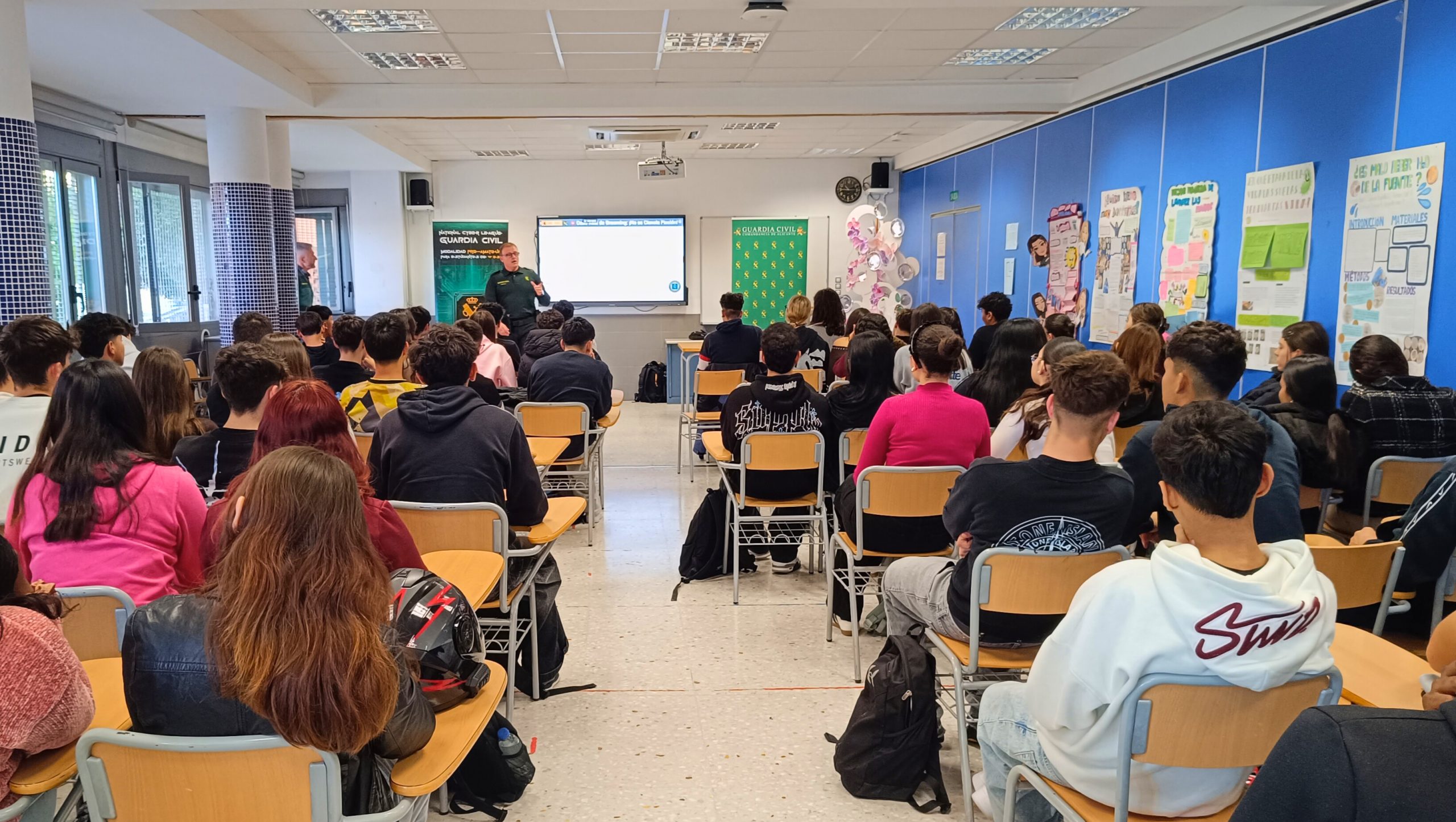 La jornada celebrada en el IES La Malladeta ha comenzado con una conferencia sobre el uso seguro y responsable de las nuevas tecnologías y una explicación sobre las herramientas prácticas de autoprotección digital. En esta charla han participado el cabo primero Javier Herrero, jefe del equipo @ de la Comandancia de la Guardia Civil de Alicante; el teniente Agustín Serna, coordinador del Plan Director provincial y miembro de la “Ciberliga” provincial; Victor Patiño, portavoz de la Guardia Civil de Alicante; y Andrés Lacalles, agente de la Guardia Civil de Villajoyosa y uno de los encargados de la “Ciberliga”.