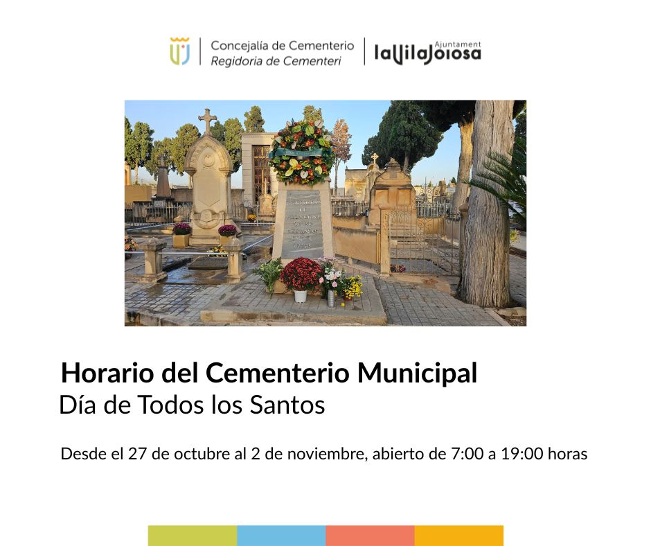El cementerio municipal de Villajoyosa amplía su horario desde el lunes 27 de octubre y hasta el domingo 2 de noviembre con motivo de la celebración del Día de Todos los Santos.