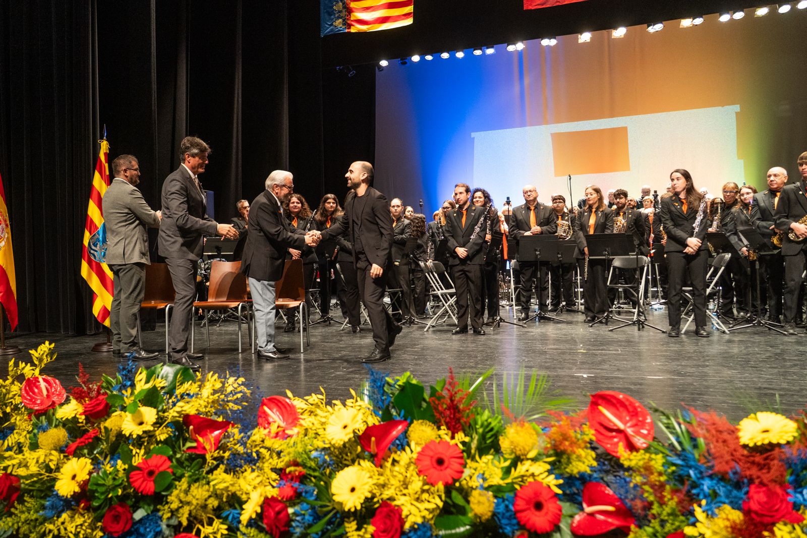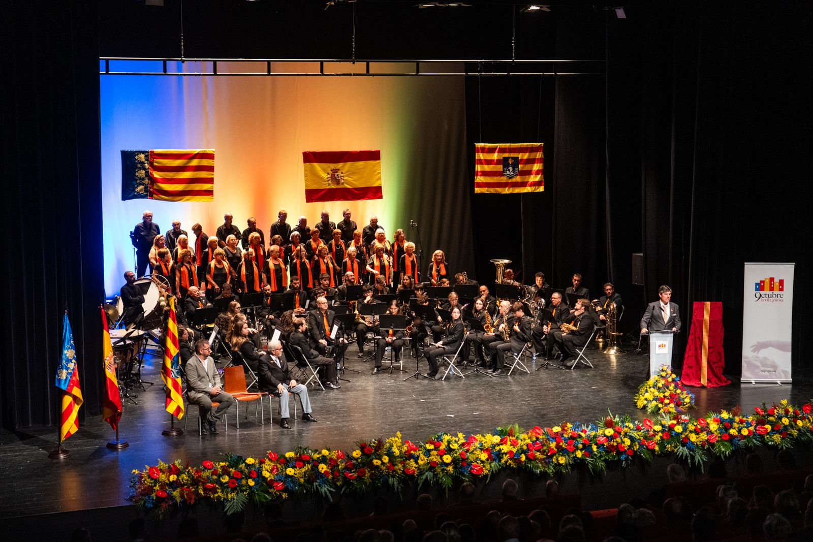 El acto concluyó con la Agrupación Musical Mediterráneo y la Coral de Villajoyosa interpretando el himno regional. Además, en el exterior del Teatre Auditori de La Vila, donde se trasladó el acto por las previsiones meteorológicas, se ofreció la típica “mocadorada de Sant Dionís”, cuyo donativo se destina a dos asociaciones del municipio.