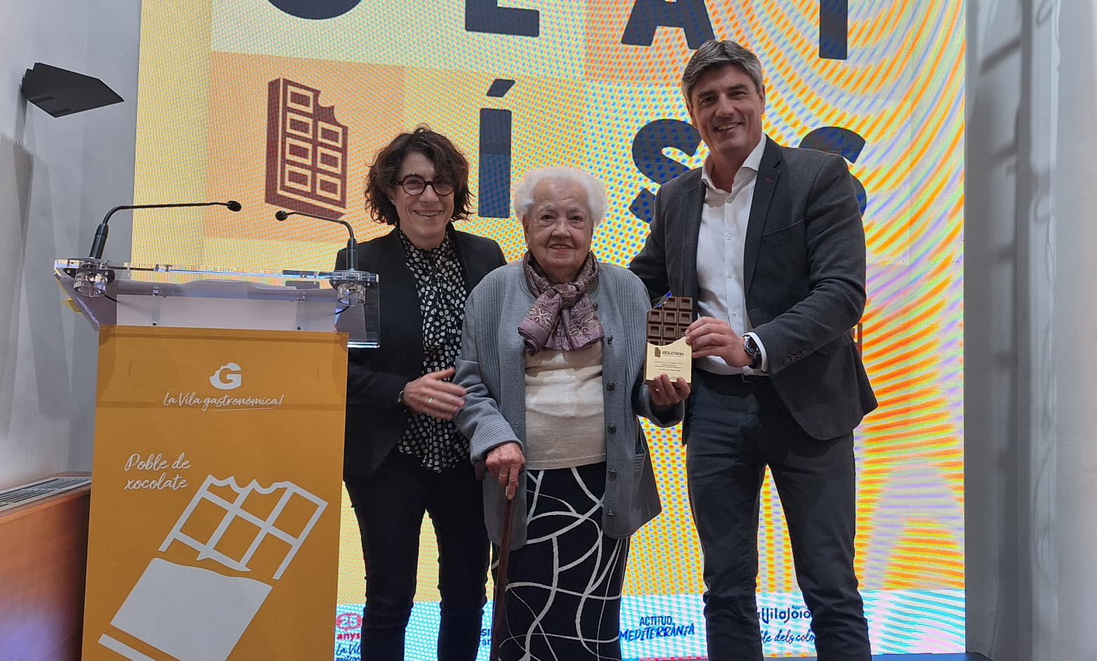 El acto sirvió como escenario para poder ver un adelanto del documental “Poble de Xocolate”. Esta cinta “muestra esta tradición chocolatera desde el siglo XVII y la proyección que tiene el sector en el municipio”, indicó el Acalde Marcos Zaragoza. El documental tiene más de 40 entrevistas con testimonios relacionados con esta industria tradicional vilera a los que acompañan material gráfico del Archivo Municipal y de las colecciones de Vilamuseu, así como piezas de archivos personales. El Alcalde avanzó que el documental está previsto que se estrene en 2026.
